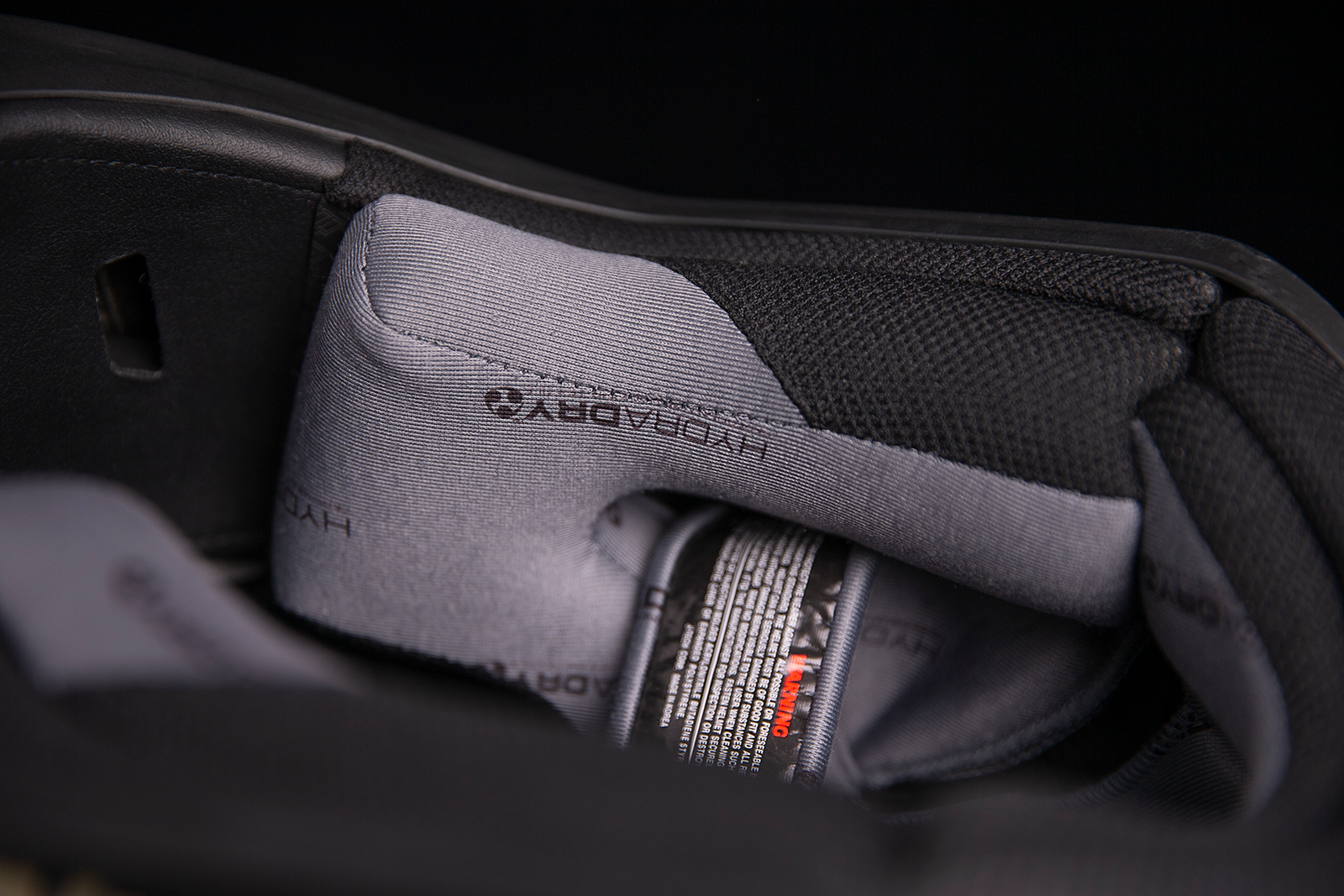 - Removable Hydradry™ 3-piece moisture wicking liner