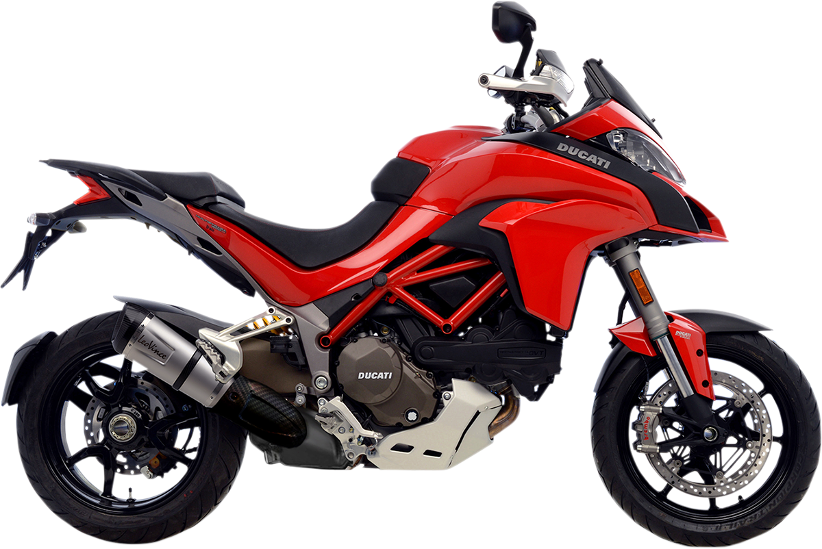 Conical shape sleeve Carbon Fiber bracket with rubber gasket High temperature resistant packing (1,650 °F / 900 °C) Adjustable full carbon fastening strap Laser Etched LeoVince Logo