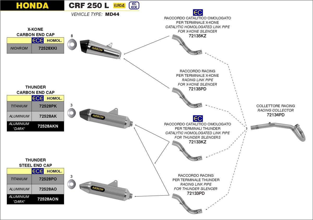 Arrow's 72134PD Racing Collector is made specifically for Honda CRF250L (2017-2018).